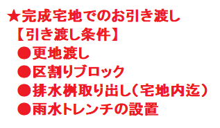 特色 | 建築条件なし、適合で建築可、公営水道(宅内引込済)、排水・浄化槽・(U字溝新設予定)、プロパンガス、完成宅地でのお引渡し、机上分筆、敷地内に電柱設置予定、水害ハザードマップ:該当なし |