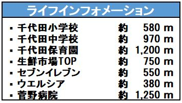 学区 | 千代田小学校 580m/千代田中学校 970m |