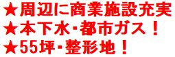 周辺に商業施設充実、生活に便利!本下水・都市ガス!55坪・整形地!建築条件無しのため、お好きなハウスメーカーで建築できます!