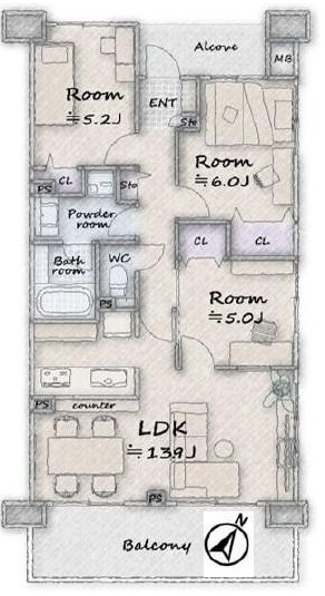 | 間取詳細 | 洋5.0、洋5.2、洋6.0、LDK13.9 |