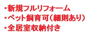 | 特色 | エレベータ、オートロック、ペット飼育可(細則有)、角部屋、二階以上、駐車場(空状況要確認5,000円~9,000円/月)、都市ガス、リフォーム、空室、口座振替手数料88円 |