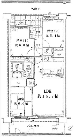 | 間取詳細 | 和6、洋6、洋5.4、LDK15.7 |