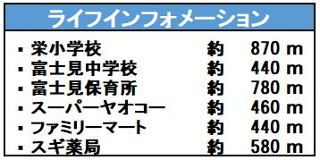 | 学区 | 栄小学校 870m/富士見中学校 440m |
