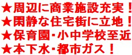 | 特色 | 駐車場、公営水道、公共本下水、都市ガス、ハザードマップ:0.5m~3.0m未満 |