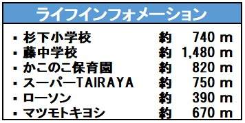 | 学区 | 杉下小学校 740m/藤中学校 1,480m |
