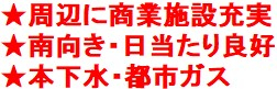 | 特色 | 駐車場、南道路、公営水道、公共本下水、都市ガス、ハザードマップ:該当なし |