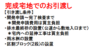 建築条件なし・調整34条12号、公営水道(前面道路配管有:要引込)、浄化槽、農地転用・開発許可が必要です(申請費用は買主負担:55万円(税込))、完成宅地でのお引渡し、水害ハザードマップ:該当なし、ナビ:三ツ木345-7 付近