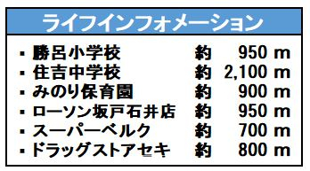 学区 | 小学校区:勝呂小学校 910m 中学校区:住吉中学校 1,400m |