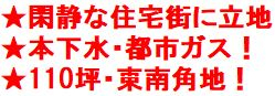 閑静な住宅街に立地!本下水・都市ガス!110坪・東南角地!建築条件無しのため、お好きなハウスメーカーで建築できます!