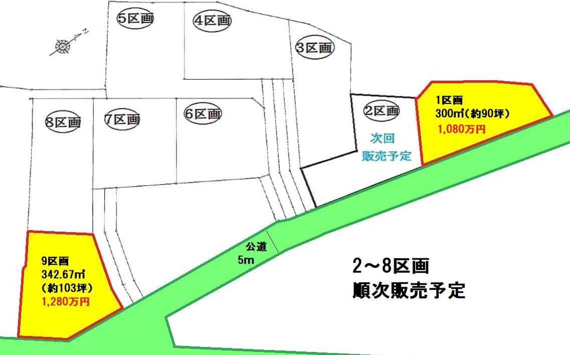 建築条件なし、調整34条12号、公営水道(一部有)、プロパンガス、電気、農地転用・開発許可が必要です、最終枡・雨水枡売主負担、現況渡し、2~8区画順次販売予定、水害ハザードマップ:該当なし
