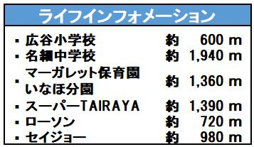 学区 | 小学校区:広谷小学校 600m 中学校区:名細中学校 1,940m |