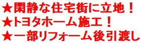 閑静な住宅街に立地!トヨタホーム施工!一部リフォーム後引渡し!