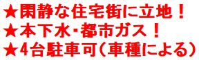 閑静な住宅街に立地!本下水・都市ガス!4台駐車可(車種による)