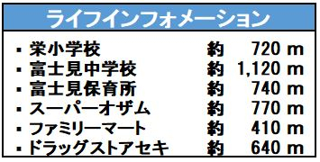 学区 | 小学校区:栄小学校 720m 中学校区:鶴ヶ島中学校 1,120m |