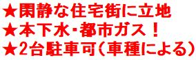閑静な住宅街に立地!本下水・都市ガス!2台駐車可(車種による)