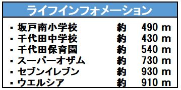 | 学区 | 小学校区:坂戸南小学校 490m 中学校区:千代田中学校 430m |