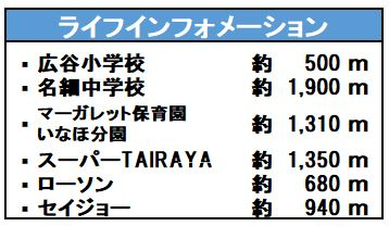 学区 | 小学校区:広谷小学校 500m 中学校区:名細中学校 1,900m |