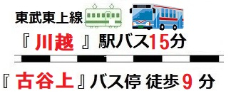 交通 | 東武東上線 川越駅まで バス15分 停歩9分 |