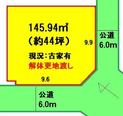 接道 | 南東 6m(幅員) 公道 9.9m(接面) 南西 6m(幅員) 公道 9.6m(接面) |