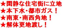 建築条件なし、南道路、角地、公営水道、公共本下水、都市ガス、電気、解体更地渡し、水害ハザードマップ:該当なし