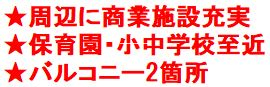 周辺に商業施設充実、生活に便利!保育園・小中学校至近!バルコニー2箇所!