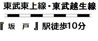 交通 | 東武東上線 坂戸駅まで 徒歩10分 東武東上線 北坂戸駅まで 徒歩26分 |