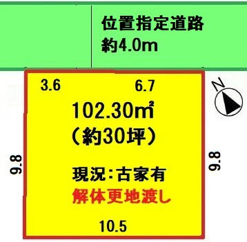 | 接道 | 北 4m(幅員) 位置指定道路 3.6m(接面) |
