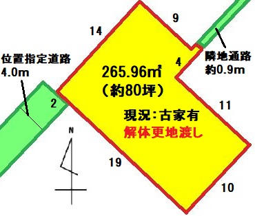 | 接道 | 西 4m(幅員) 位置指定道路 2m(接面) |