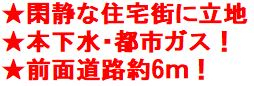 閑静な住宅街に立地!保育所・小学校至近!本下水・都市ガス!前面道路約6m!建築条件無しのため、お好きなハウスメーカーで建築できます!