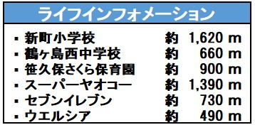 | 学区 | 小学校区:新町小学校 1,620m 中学校区:鶴ヶ島西中学校 660m |