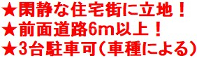 駐車場、カースペース3台以上、公営水道、公共本下水、プロパンガス、法22条区域、ハザードマップ:0.5m~3.0m未満