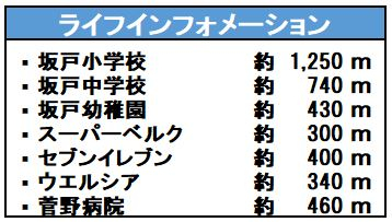 | 学区 | 小学校区:坂戸小学校 1,250m 中学校区:坂戸中学校 740m |