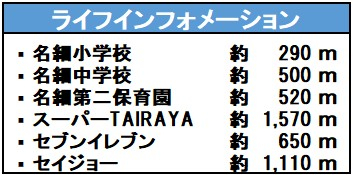 | 学区 | 小学校区:名細小学校 290m 中学校区:名細中学校 500m |