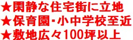 閑静な住宅街に立地!保育園・小中学校至近!敷地広々100坪以上!建築条件無しのため、お好きなハウスメーカーで建築できます!