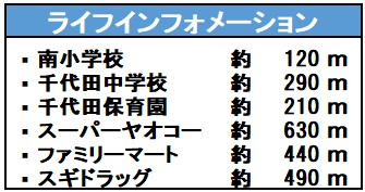 | 学区 | 小学校区:坂戸南小学校 120m 中学校区:千代田中学校 290m |