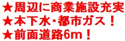 周辺に商業施設充実、生活に便利!本下水・都市ガス!前面道路6m!