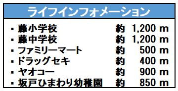 | 学区 | 小学校区:藤小学校 1,200m 中学校区:藤中学校 1,200m |