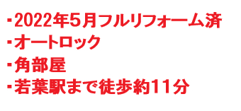 エレベータ、オートロック、角部屋、二階以上、都市ガス、リフォーム(2022年5月)
