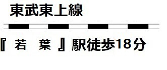 | 交通 | 東武東上線 若葉駅まで 徒歩18分 東武東上線 鶴ヶ島駅まで 徒歩21分 |