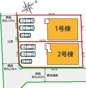 | 接道 | 南西 5.1m(幅員) 公道 7.1m(接面) 南東 4.4m(幅員) 隣地通路 18.7m(接面) |