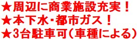 駐車場、カースペース3台以上、南道路、公営水道、公共本下水、都市ガス、ハザードマップ:該当なし、ナビ:中新田1618-4付近