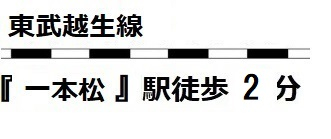 | 交通 | 東武越生線 一本松駅まで 徒歩2分 東武東上線 坂戸駅まで 徒歩40分 |