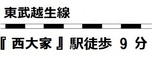 | 交通 | 東武越生線 西大家駅まで 徒歩9分 東武越生線 一本松駅まで 徒歩19分 |