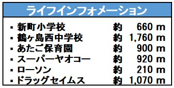 | 学区 | 小学校区:新町小学校 660m 中学校区:鶴ヶ島西中学校 1,760m |