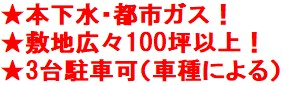 駐車場、カースペース3台以上、角地、南道路、公営水道、浄化槽、都市ガス、ハザードマップ:該当なし