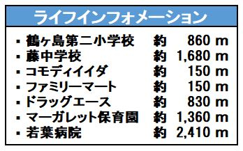 | 学区 | 小学校区:鶴ヶ島第二小学校 860m 中学校区:藤中学校 1,680m |