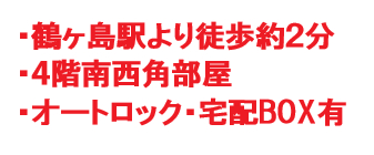 | 交通 | 東武東上線 鶴ヶ島駅まで 徒歩2分 |