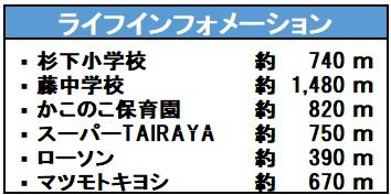 | 交通 | 鶴ヶ島駅まで 徒歩12分 | 学区 | 小学校区:杉下小学校 740m 中学校区:藤中学校 1480m |