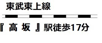 | 交通 | 高坂駅まで 徒歩17分 | 学区 | 小学校区:野本小学校 1730m 中学校区:東松山南中学校 3500m |