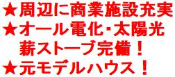 周辺に商業施設充実、生活に便利!オール電化・太陽光・薪ストーブ完備!元モデルハウスとして使用!